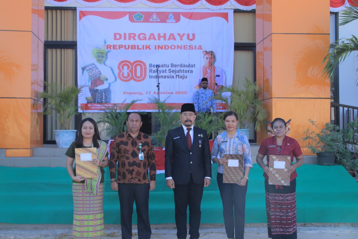 Baca selengkapnyaIAKN Kupang (Kemenag) – Prosesi penyerahan Surat Keputusan (SK) Penyesuaian Nomenklatur Jabatan Pelaksana bagi tiga Aparatur Sipil Negara (ASN) Institut Agama Kristen Negeri (IAKN) Kupang berlangsung khidmat dalam rangkaian upacara peringatan HUT ke-80 Republik Indonesia pada Minggu (17/08/2025) di halaman kampus IAKN Kupang. Penyerahan SK dilakukan langsung oleh Rektor IAKN Kupang, Dr. I Made Suardana, […]