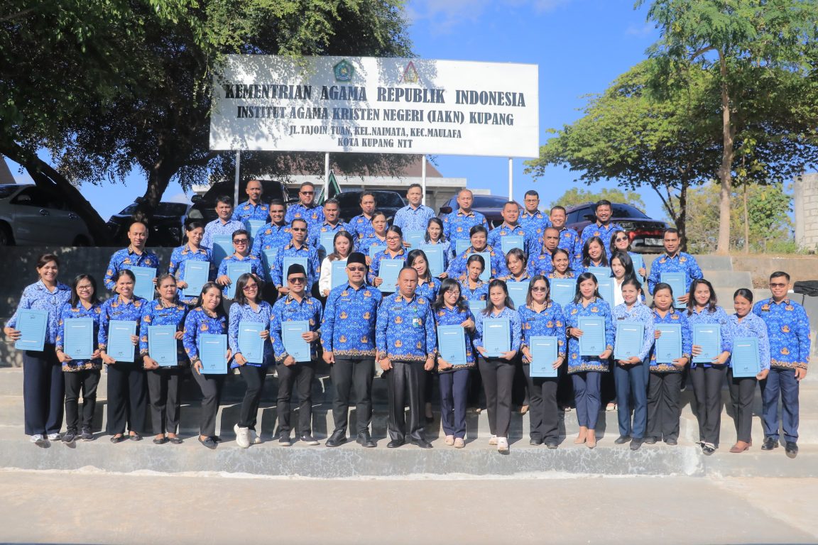 Baca selengkapnyaIAKN Kupang (Kemenag) — Momentum Apel Kesadaran yang dilaksanakan pada Selasa, 17 Juni 2025, kembali menjadi ajang apresiasi dan motivasi bagi sivitas akademika Institut Agama Kristen Negeri (IAKN) Kupang. Dalam kesempatan tersebut, Rektor IAKN Kupang, Dr. I Made Suardana, M.Th, secara resmi menyerahkan Surat Keputusan (SK) Jabatan Akademik Lektor Kepala kepada empat dosen IAKN Kupang. […]