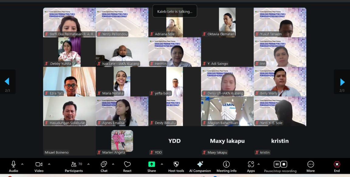 Baca selengkapnyaIAKN Kupang (Kemenag RI) — Institut Agama Kristen Negeri (IAKN) Kupang melaksanakan Sosialisasi Panduan Penelitian dan Pengabdian kepada Masyarakat (PKM) Tahun 2026 pada Selasa, 27 Januari 2026, melalui platform Zoom Meeting. Kegiatan ini diikuti oleh seluruh dosen IAKN Kupang. Kegiatan sosialisasi dibuka secara resmi oleh Rektor IAKN Kupang, Dr. I Made Suardana, M.Th. Dalam arahannya, […]