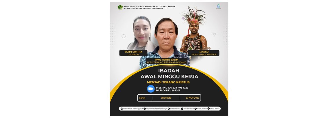 Baca selengkapnyaIAKN Kupang (Kemenag) – – – Institut Agama Kristen Negeri (IAKN) Kupang turut hadir dalam Ibadah Awal Pekan yang diadakan oleh Direktorat Jenderal Bimas Kristen (Ditjen Bimas Kristen) pada hari Senin, (27/11/2023). Ibadah ini diselenggarakan secara hybrid, menghadirkan seluruh Aparatur Sipil Negara (ASN) di bawah naungan Ditjen Bimas Kristen. Acara yang dimulai pukul 08.00 WIB […]