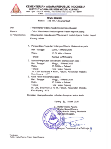 PENGUMUMAN PENGAMBILAN TOGA, IBADAH PENGUTUSAN DAN GLADI RESIK WISUDA PERIODE I 2026 13 Maret 2026 10:49 WITA | iakn kupang | Berita Kampus, Headline Utama, Seputar Kampus Silakan Ikuti IAKN Kupang di Social Media Post navigation Sebelumnya: Lima Dosen IAKN Kupang Raih Jabatan Fungsional Lektor Kepala dan Asisten Ahli, Rektor Ajak Warga Kampus Perkuat Kolaborasi Positif Berita Kampus Lainnya Lima Dosen IAKN Kupang Raih Jabatan Fungsional Lektor Kepala dan Asisten Ahli, Rektor Ajak Warga Kampus Perkuat Kolaborasi Positif 12/03/2026 Lomba Pidato Antar SMA/SMK/SMTK di Kota Kupang Yang Digelar Oleh Fakultas Keguruan & Ilmu Pendidikan Kristen-IAKN Kupang Berlangsung Meriah 12/03/2026 FKIPK IAKN Kupang Gelar Yudisium : 37 Mahasiswa Resmi Menyelesaikan Studi 12/03/2026 PENGUMUMAN PERPANJANGAN PENDAFTARAN WISUDA PERIODE I TAHUN 2026 10/03/2026 IAKN Kupang Gandeng Robby R. Meka Bedah Buku “KONTRAPUNG”, Perkuat Kualitas Musikalitas Mahasiswa 06/03/2026 IAKN Kupang Matangkan Pengabdian kepada Masyarakat 2026, Dorong Model Berkelanjutan Menuju Transformasi Universitas 03/03/2026 IAKN Kupang dan Yayasan Rumah Literasi Cakrawala Jalin Kerja Sama Pengembangan Literasi untuk Masa Depan NTT 02/03/2026 Rektor IAKN Kupang Serahkan SK Plt. Kepala Biro AUAK 02/03/2026 Sosialisasi PMB Pascasarjana IAKN Kupang di Kantor Kemenag Kabupaten TTS 02/03/2026 Rektor IAKN Kupang Hadiri Launching Selnas PMB PTKKN 2026 di IAKN Palangka Raya 02/03/2026 Kategori Acara & Tulisan IlmiahBerita KampusKabar FakultasPendidikanPenelitian dan InovasiPojok DosenPojok RektorPrestasiSEKILAS IAKN KUPANGSeminar/WorkshopSeputar Kampus Kontak Kami Institut Agama Kristen Negeri (IAKN) Kupang Jalan Tajoin Tuan, Kel. Naimata, Kec. Maulafa Kota Kupang – NTT 85147 (0380) 824911 staknkupang@kemenag.go.id Berita Terbaru PENGUMUMAN PENGAMBILAN TOGA, IBADAH PENGUTUSAN DAN GLADI RESIK WISUDA PERIODE I 2026 13/03/2026 Berita Kampus, Headline Utama, Seputar Kampus Baca selengkapnya Lima Dosen IAKN Kupang Raih Jabatan Fungsional Lektor Kepala dan Asisten Ahli, Rektor Ajak Warga Kampus Perkuat Kolaborasi Positif 12/03/2026 Berita Kampus, Headline Utama, Seputar Kampus Baca selengkapnya Lomba Pidato Antar SMA/SMK/SMTK di Kota Kupang Yang Digelar Oleh Fakultas Keguruan & Ilmu Pendidikan Kristen-IAKN Kupang Berlangsung Meriah 12/03/2026 Berita Kampus, Headline Utama, Seputar Kampus Baca selengkapnya FKIPK IAKN Kupang Gelar Yudisium : 37 Mahasiswa Resmi Menyelesaikan Studi 12/03/2026 Berita Kampus, Headline Utama, Seputar Kampus Baca selengkapnya